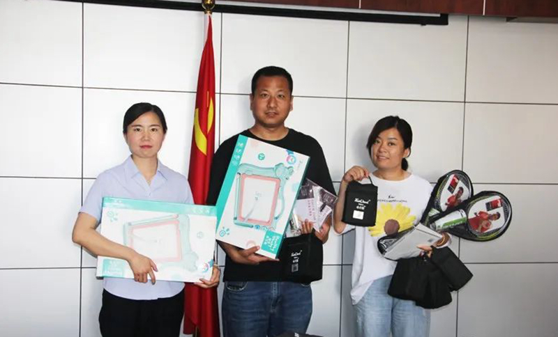 針對不同年齡段的兒童,行政部精心準備了畫畫板、馬克筆、羽毛球拍等禮品。