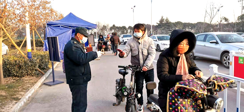 一大早,就能看到大門(mén)口工作人員對(duì)出入車(chē)輛和人員進(jìn)行登記、掃碼、氣溫測(cè)量、口罩佩戴等防控工作。