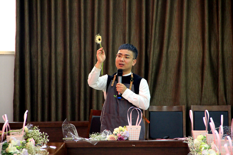 活動在花的芬芳中拉開帷幕?;ㄋ嚴蠋煘榇蠹抑v授插花知識和養(yǎng)護常識,現(xiàn)場演示花材處理、色彩搭配等技巧。