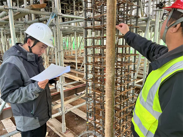 土建工程師王超(上圖左一)勇擔重任,在建設一線全力沖刺,面對緊張工期與復雜環(huán)境,毫不退縮,以高度責任感,嚴格把控項目進度與質量,確保每一寸建筑都堅實可靠;