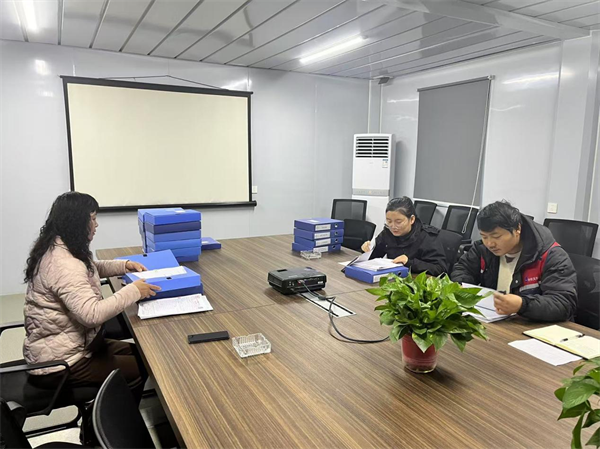 資料員王攀娟(上圖右二)在幕后默默奉獻,以專業(yè)嚴謹的態(tài)度,高效處理各類資料,為項目質量與安全筑牢信息防線。